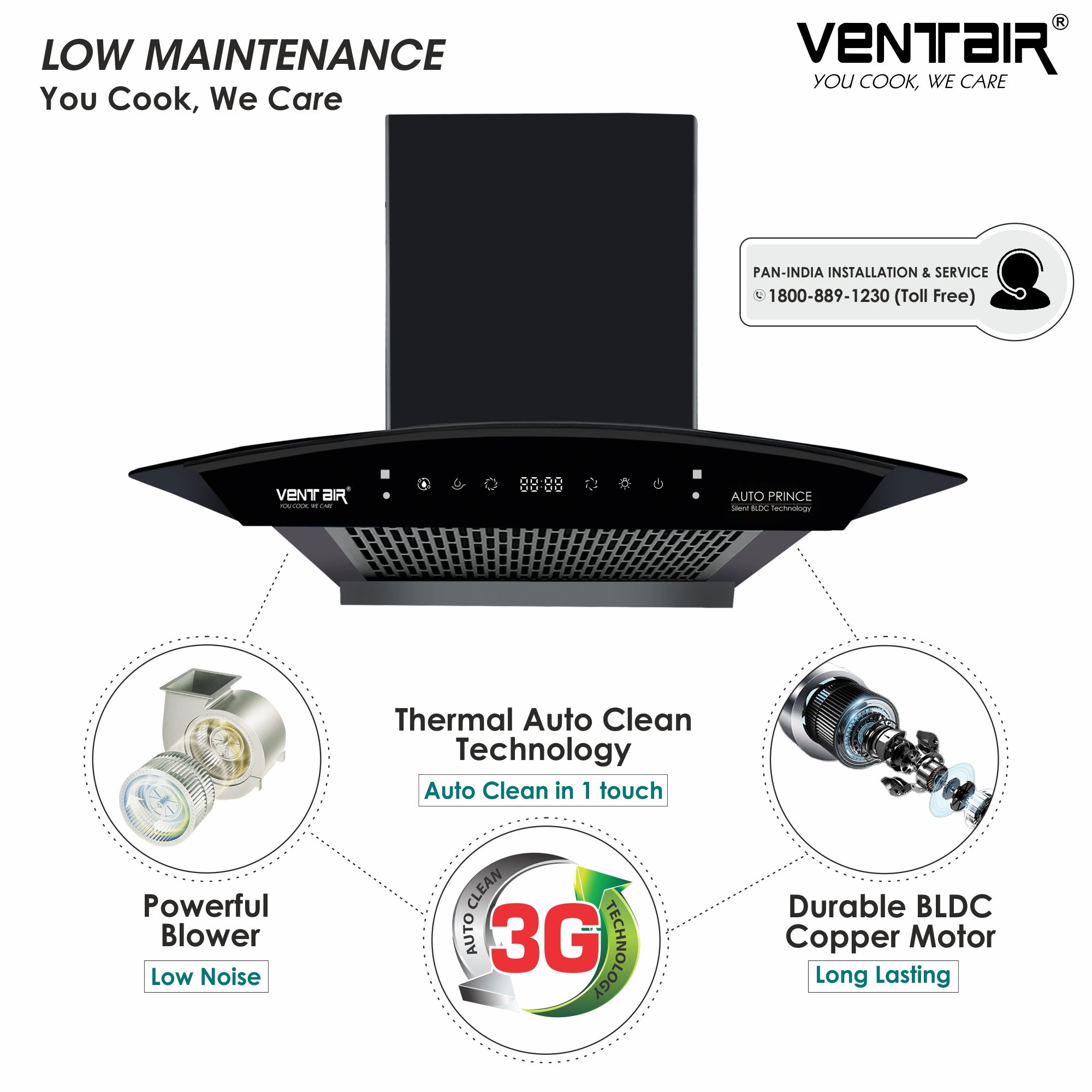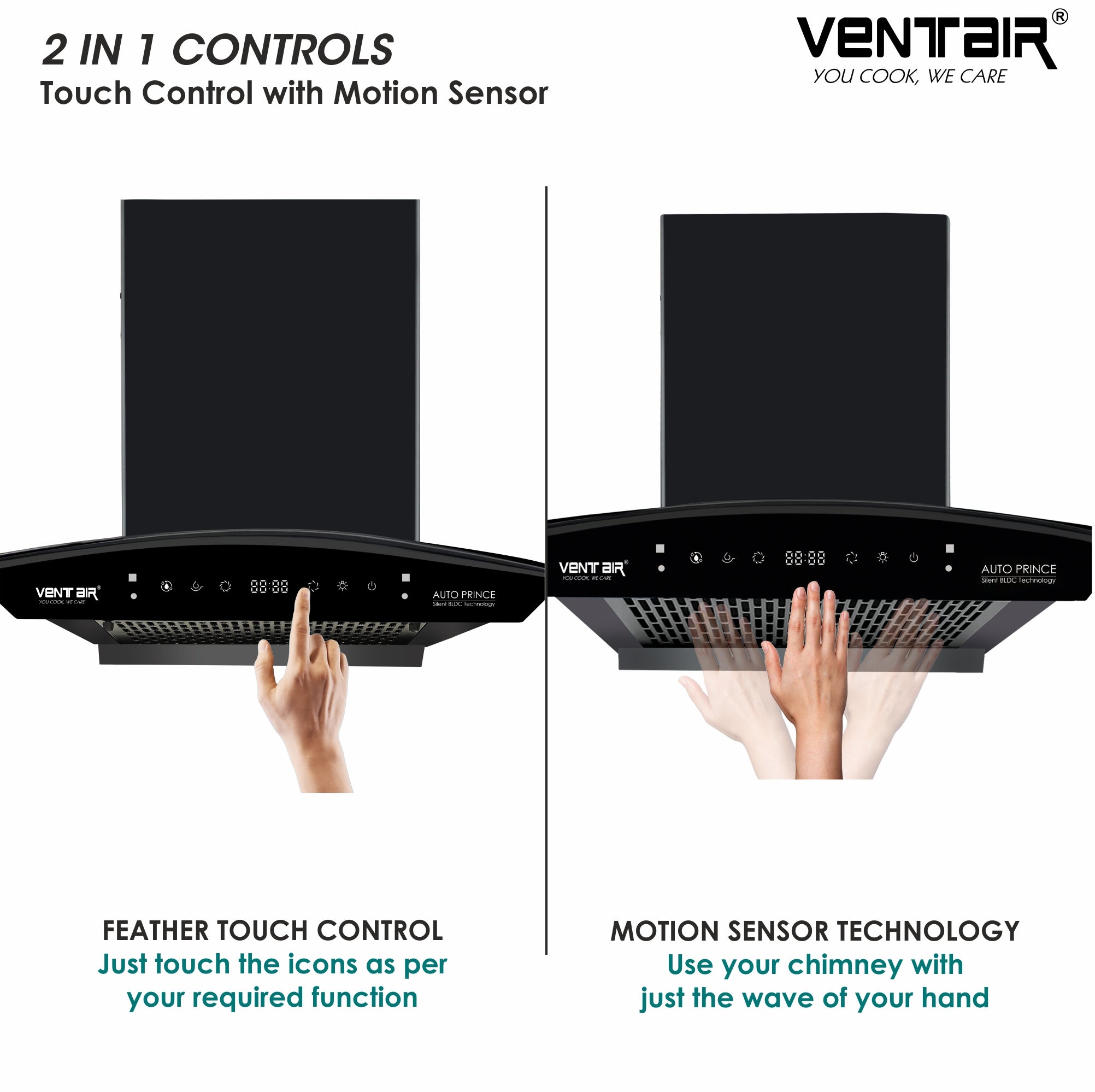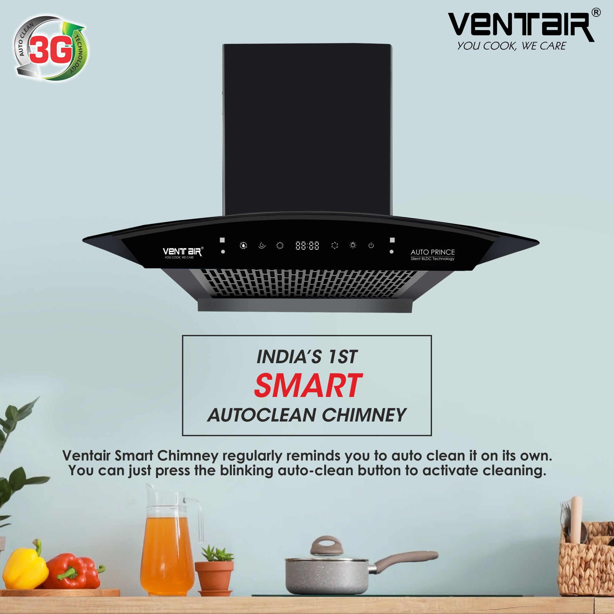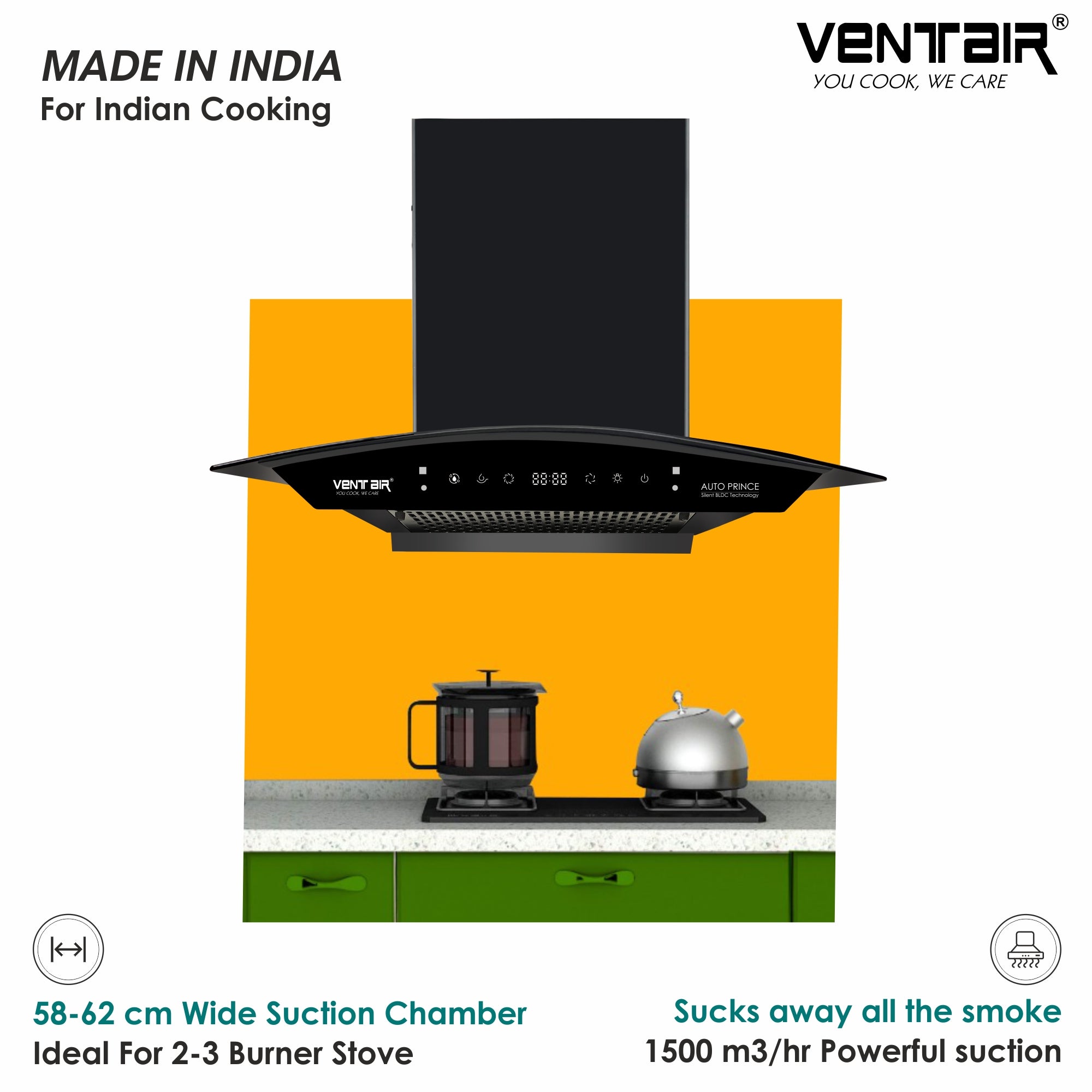 Ventair Auto Prince BLDC comes with Revolutionary Silent BLDC Motor which gives upto 80% Energy Saving & 32% Less Noise. If you're looking for super quiet and peaceful cooking, this chimney is just the thing you need - no noise here!